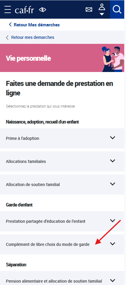 Si vous avez un compte CAF, connectez-vous et faites la demande de prestation pour le CMG (« Complément de libre choix du mode de garde ») en choisissant emploi direct (Vous êtes employeur direct d’une assistante maternelle). Si vous n'avez pas de compte, crée-le.