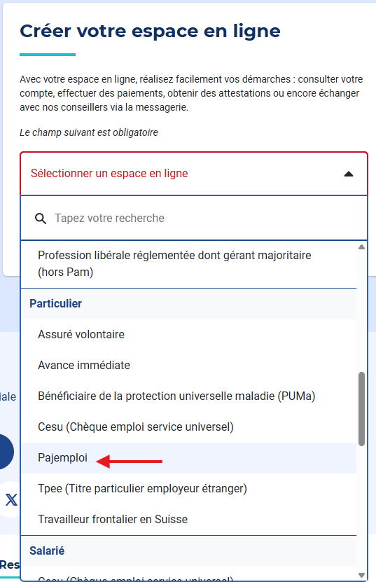 Rendez vous sur le site de l'Urssaf ICI, puis dans créer votre espace en ligne sélectionner dans particulier Pajemploi.