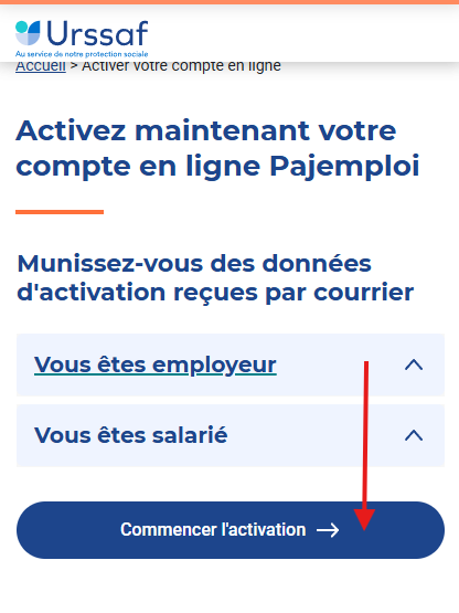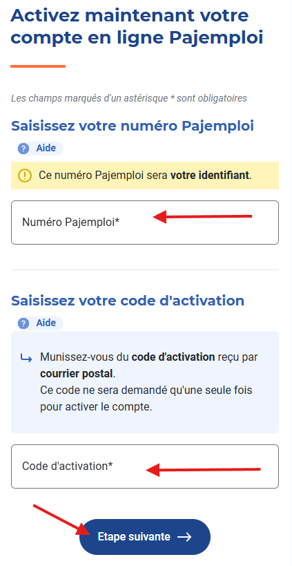 Pour activer votre compte employeur vous aurez besoin de : Votre numéro Pajemploi reçu dans un premier courrier. Il vous servira ensuite d'identifiant. Votre code d'activation reçu dans un second courrier.Votre numéro de Sécurité sociale, celui que vous avez utilisé lors de votre inscription à la Caf ou la MSA. Si vous n'avez pas de numéro de Sécurité sociale, vous pouvez tout de même activer votre compte